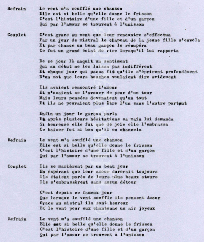 LE VENT M'A SOUFFLÉ UNE CHANSON
